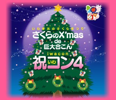 12月開催予定の『いわき光のさくらまつり』のコラボ企画として 祝コンが開催されます! その名も・・・ さくらのX'mas de 巨大合こん 祝(いわ)コン4 いわき駅前がピンク色のページェントで彩られた中で開催される 今年最後の祝コンに貴方も参加してみてはいかがですか? 前売券は以下にて好評発売中です! ・お近くのローソン(Loppi) 【Lコード 29003】 ・ホームページ http://iwacon.net/