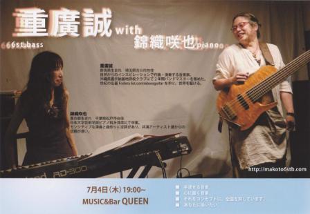 【出演】 重廣 誠(6st.bass) 錦織 咲也(piano) 埴科 きき(Vo.)